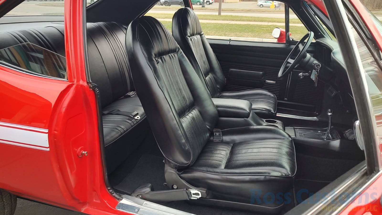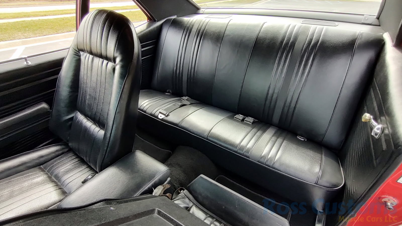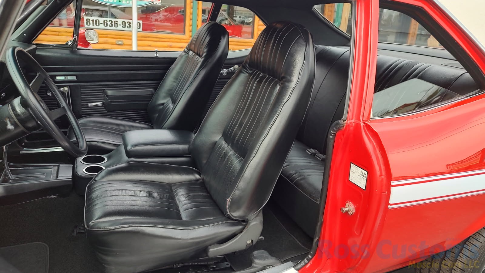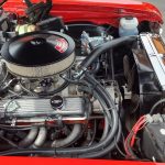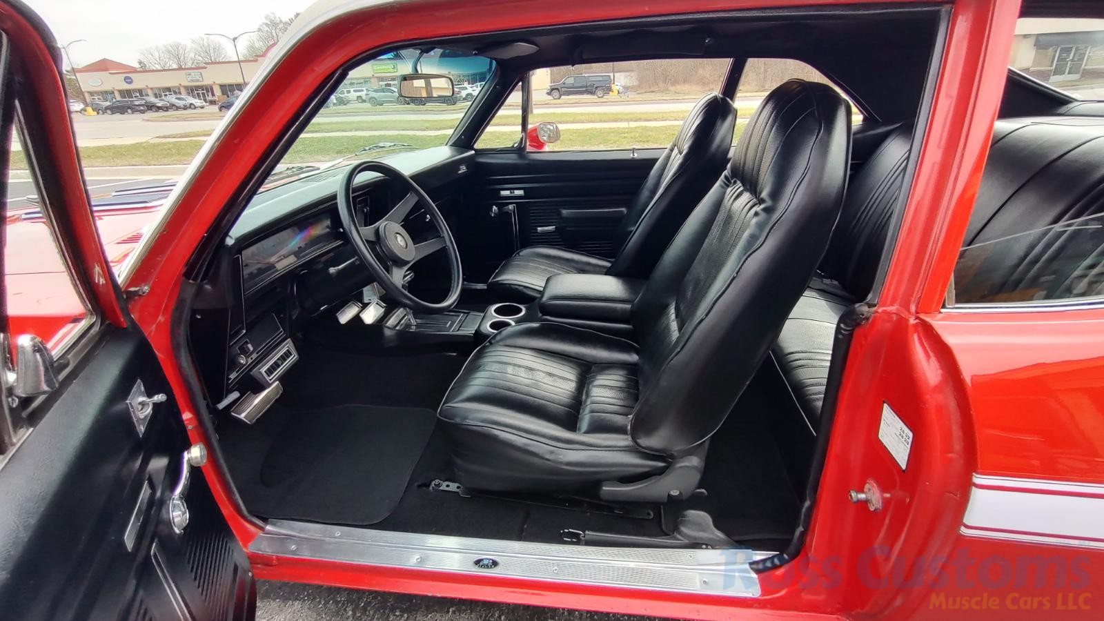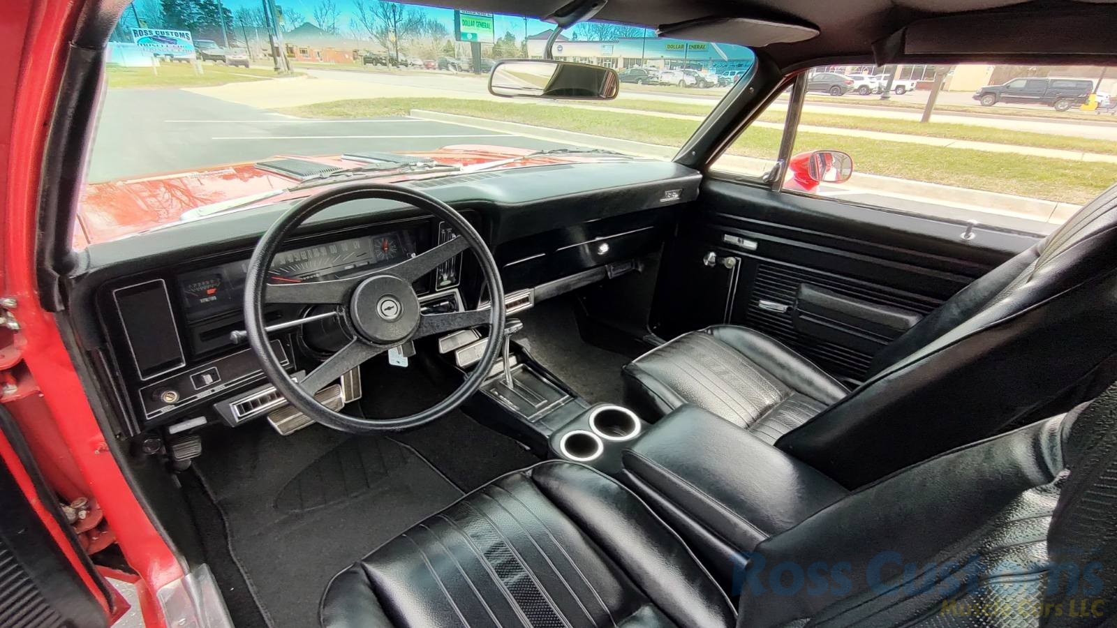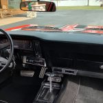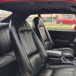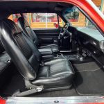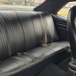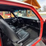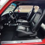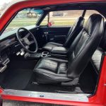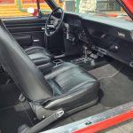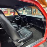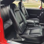 Factory black interior with bucket seats, original dash and dash pad, has rare factory gauge package with in dash tach, nicely outfitted with Vintage AC and heat with correct controls and under dash vents, Alpine AM/FM/CD stereo with bluetooth, rare center console with gauges and correct shifter, factory sport comfort grip wheel, headliner looks like new; as well as visors, front and rear door panels are original in excellent condition with new arm rest, front and rear seats have been reupholstered, front and rear seat belts, added center console with cup holders – which is removable, carpet is in excellent condition, new floor mats, original sill plates.