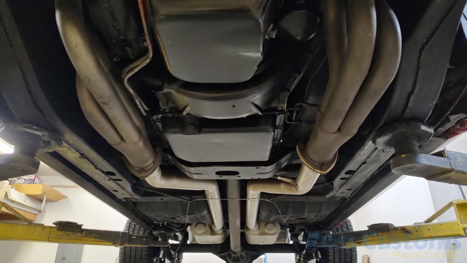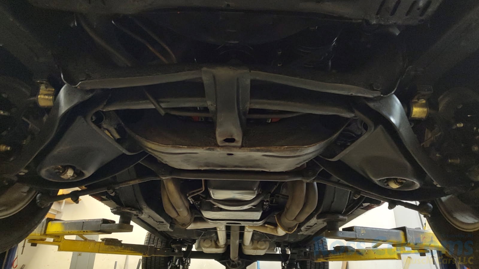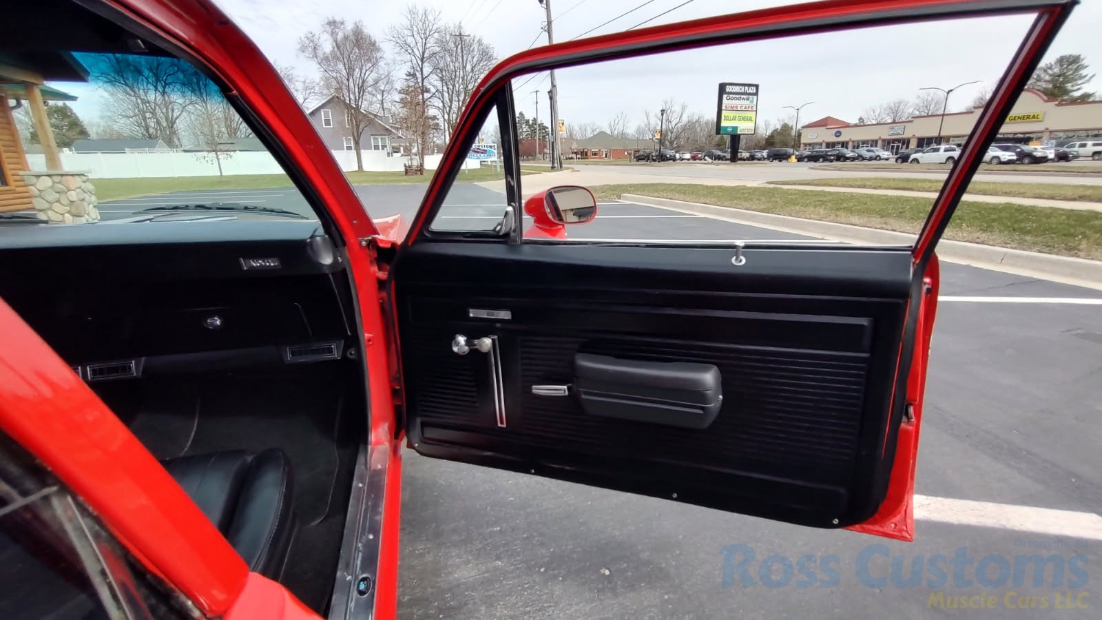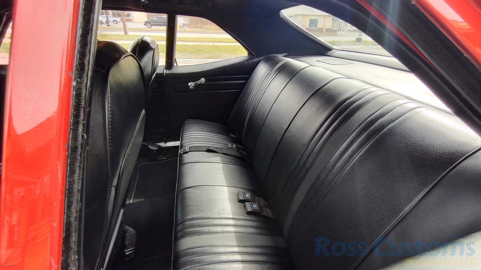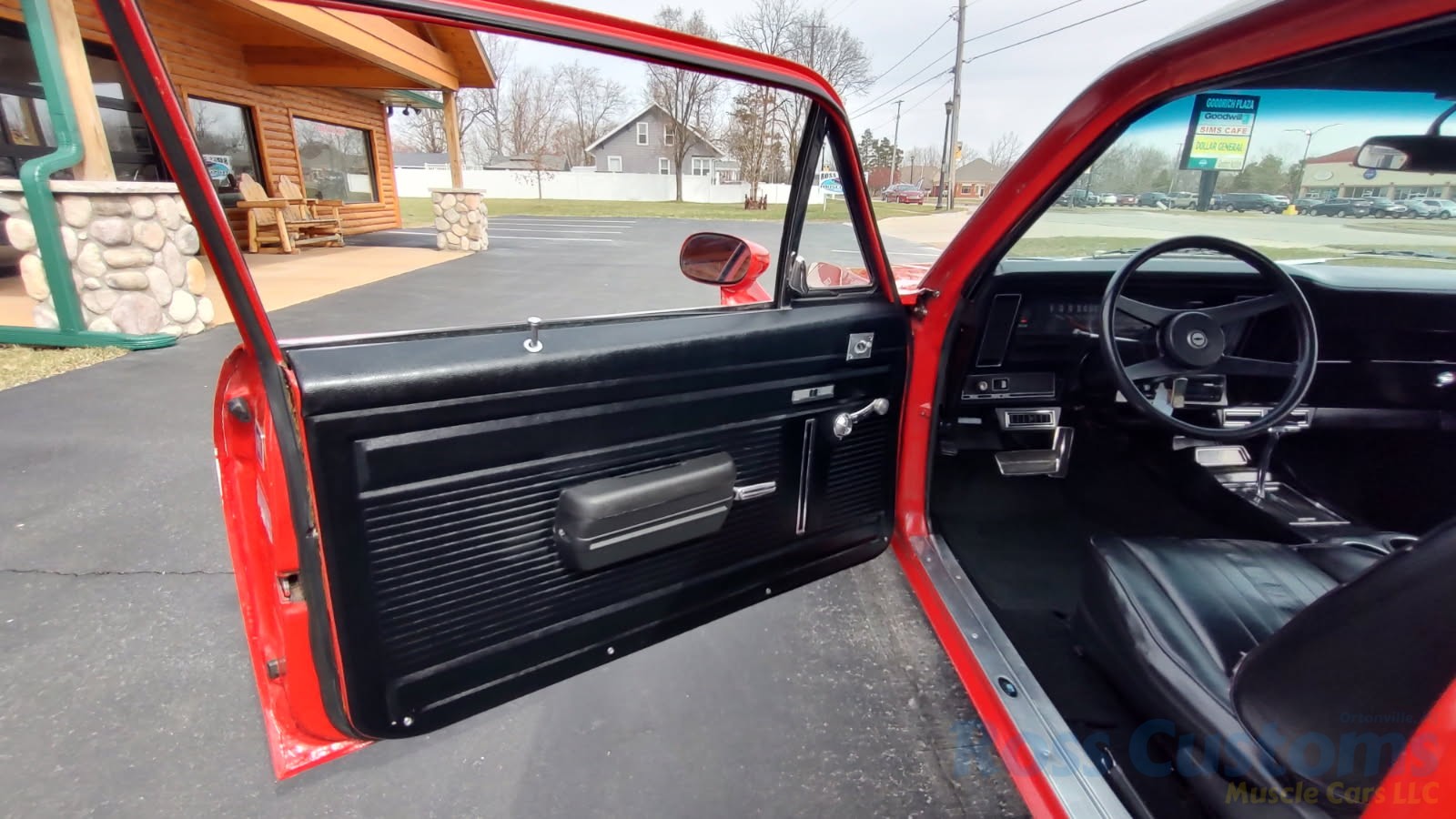 Factory black interior with bucket seats, original dash and dash pad, has rare factory gauge package with in dash tach, nicely outfitted with Vintage AC and heat with correct controls and under dash vents, Alpine AM/FM/CD stereo with bluetooth, rare center console with gauges and correct shifter, factory sport comfort grip wheel, headliner looks like new; as well as visors, front and rear door panels are original in excellent condition with new arm rest, front and rear seats have been reupholstered, front and rear seat belts, added center console with cup holders – which is removable, carpet is in excellent condition, new floor mats, original sill plates.
