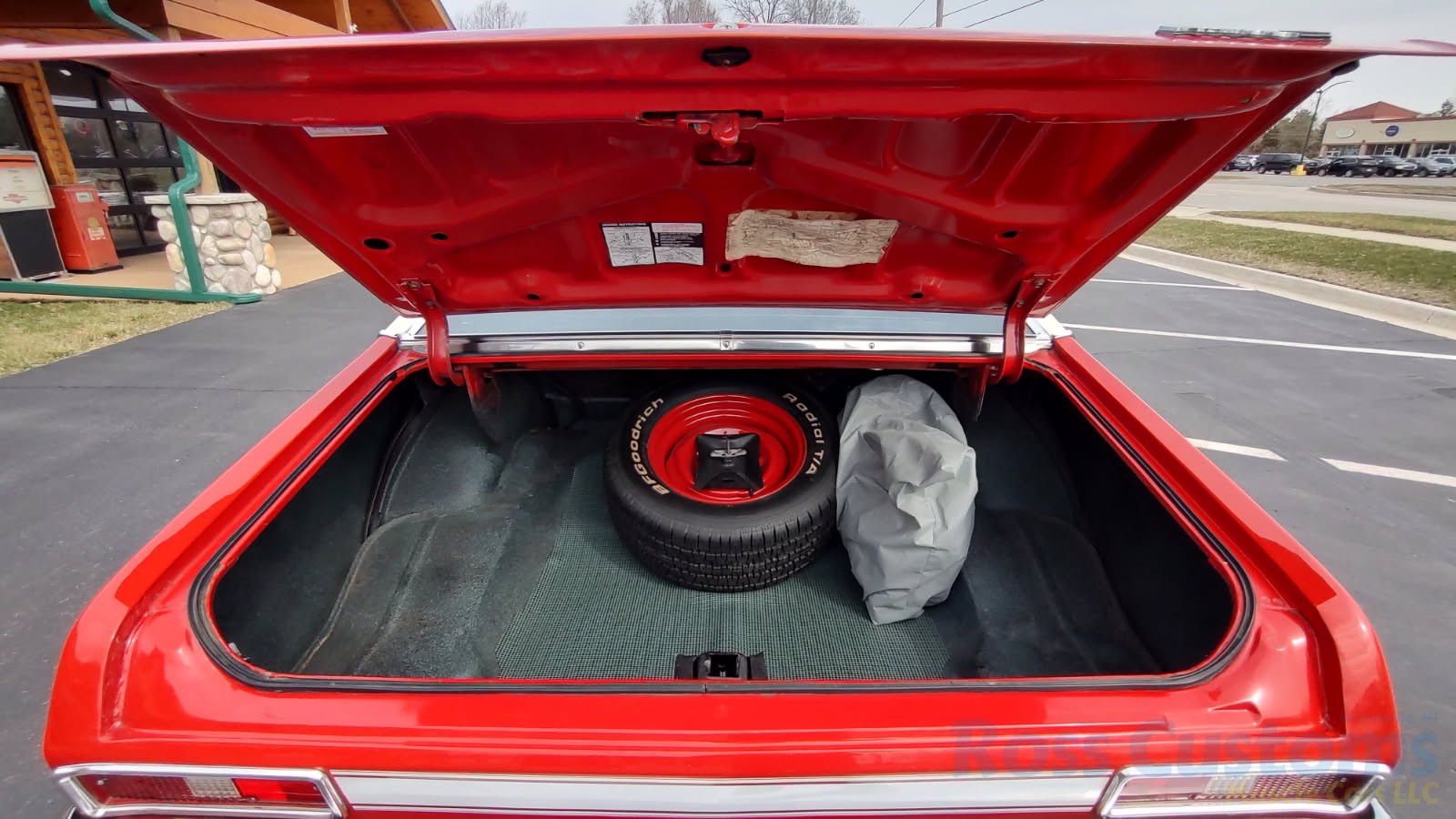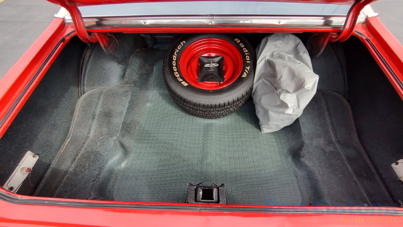 Factory jack and spare, custom car cover.