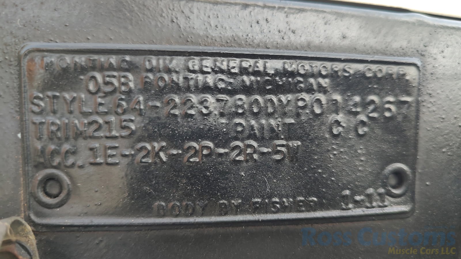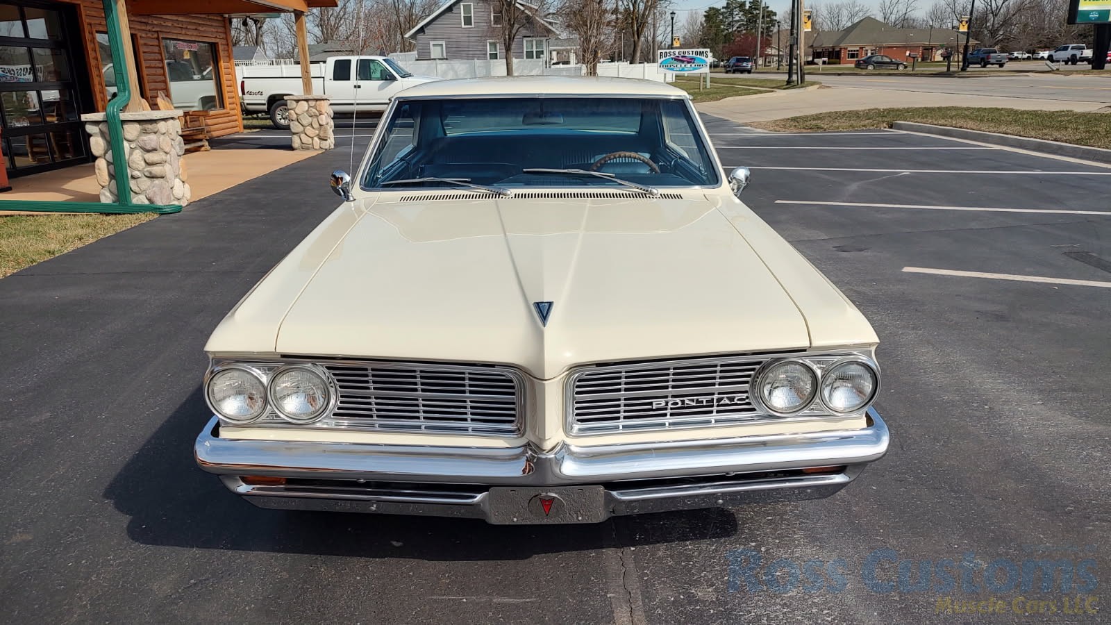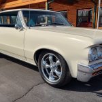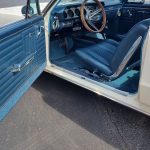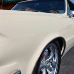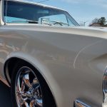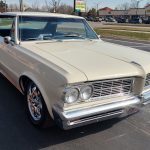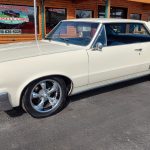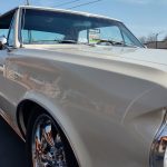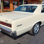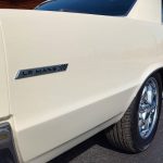 This is a super nice, clean all original panel 64 LeMans, has had a professional repaint its original color Cameo Ivory White, basecoat clearcoat, sanded and wheeled smooth, factory tinted windshield, side and back glass which is all original in excellent condition, all window stainless is original in excellent condition; as well as vent window frames, drip rail moldings and upper door trim are original in excellent condition, weather stripping and window felts have been replaced, new side view mirrors, door handles and hood emblem, grills and headlight bezels are original in excellent condition, original front bumper – showing a little age, wheel well and rocker moldings are also in excellent condition, new quarter gills, new deck lid emblems, taillight lens, tail panel applique and fuel door applique are all new, re-chromed rear bumper.