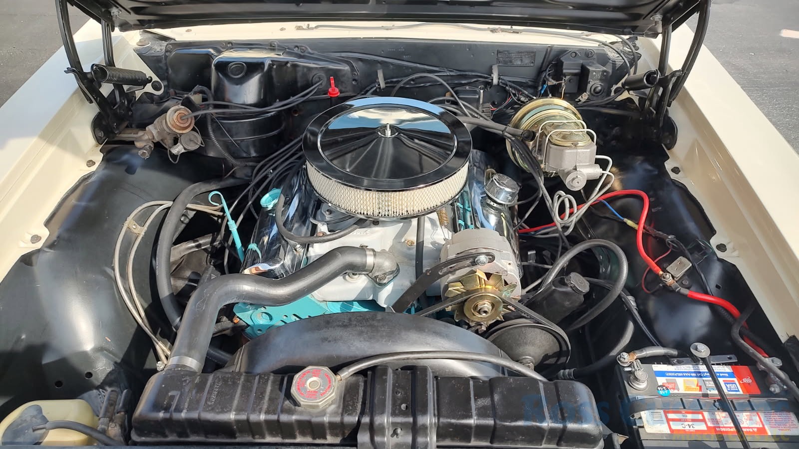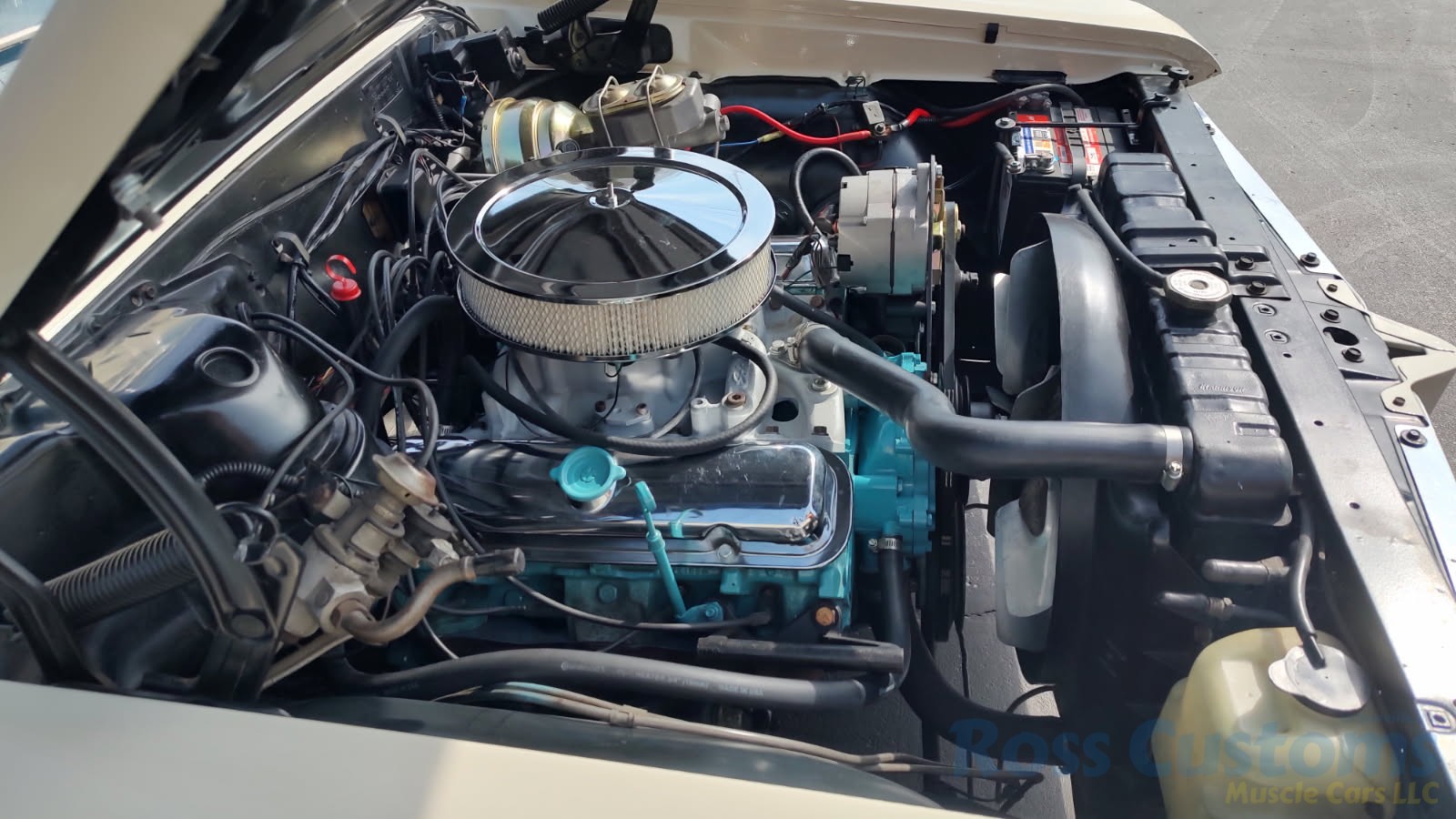 Under the hood the original motor has been replaced with a 400, Edelbrock aluminum intake, Holley 4 barrel carb with electric choke, chrome valve covers and breather, updated with 80 amp 1 wire alternator, factory Harrison heavy duty radiator with correct shroud and 7 blade clutch fan, power steering, nicely updated with power 4 wheel disc brakes, front suspension has been gone through, 2 inch drop spindles, has set of factory RamAir cast iron headers into 2 1/2 inch dual exhaust out the back, 10 bolt limited slip rear, new fuel tank and sending unit.